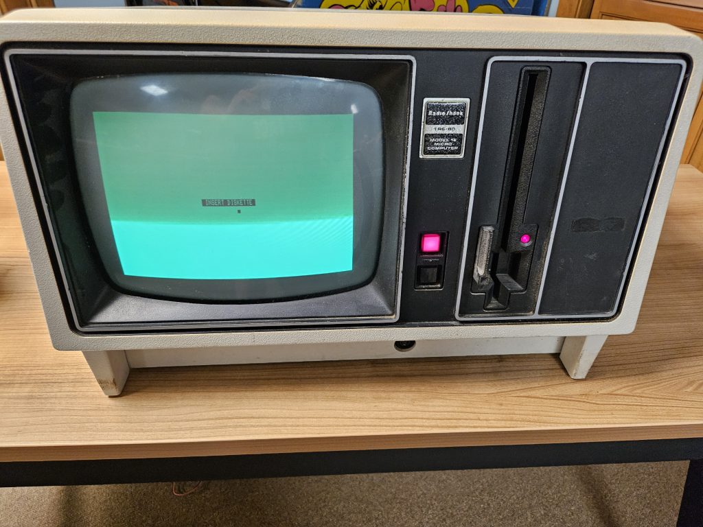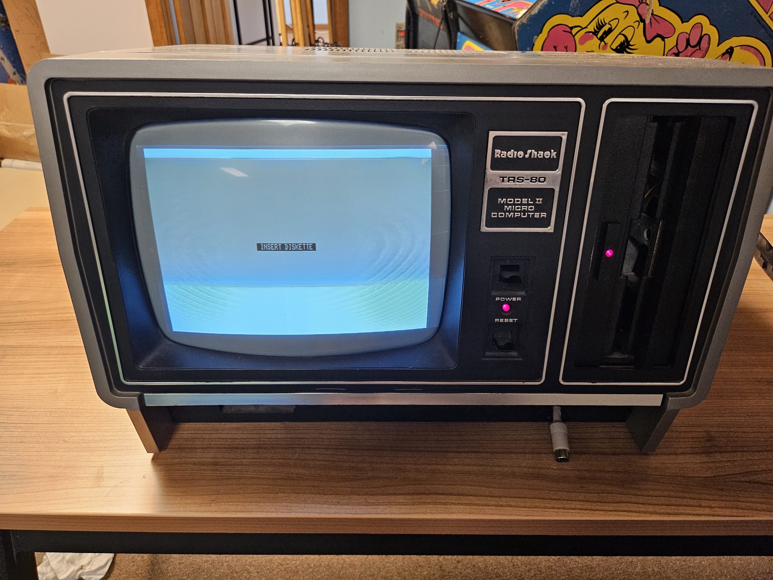 - Tandy Model II, power, screen, and drive light, but drive won’t read a disk. Case has a few cracks in one spot.